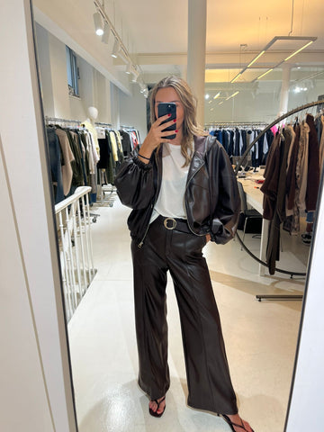Veste à capuche en simili cuir ultra souple et douce ou dirait de l'agneau! Pantalon assorti sur notre site.