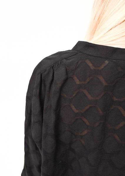 BLOUSE NOIRE MANCHES LONGUES COL ROND À BOUTONS