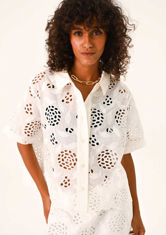 CHEMISE BRODEE BLANCHE MANCHES COURTES REFERENCE FLAVIA FLOWER DE LA MARQUE SACRECOEUR.