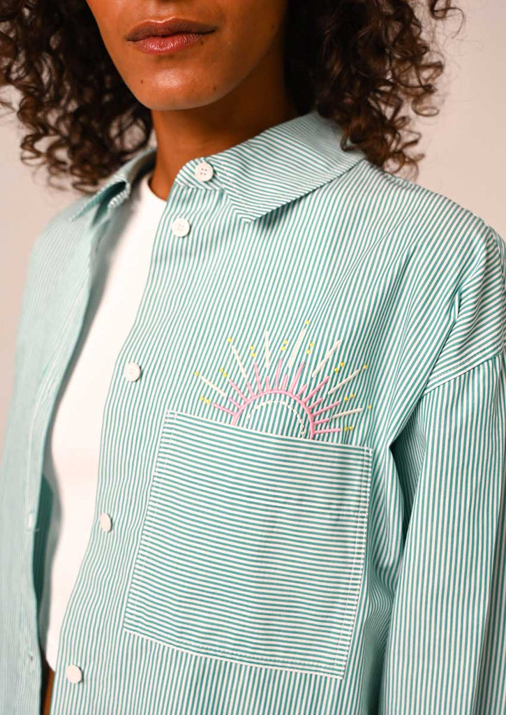 CHEMISE À RAYURES VERTES ET BLANCHES